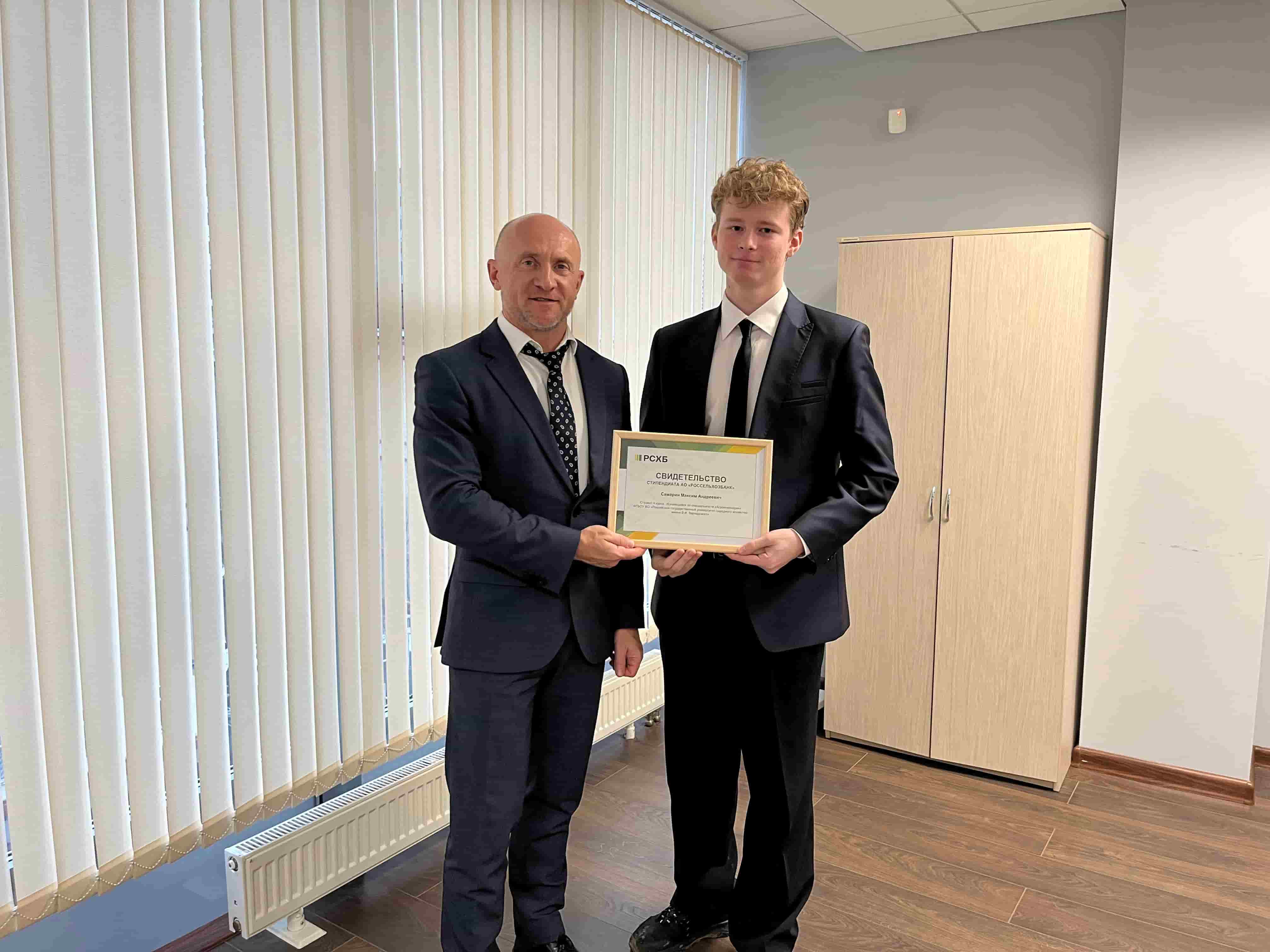 Стипендиальные свидетельства вручали директор регионального филиала Россельхозбанка по направлению «Центр розничного и малого бизнеса» Владимир Капранов и начальник отдела по работе с персоналом Елена Баэрт.