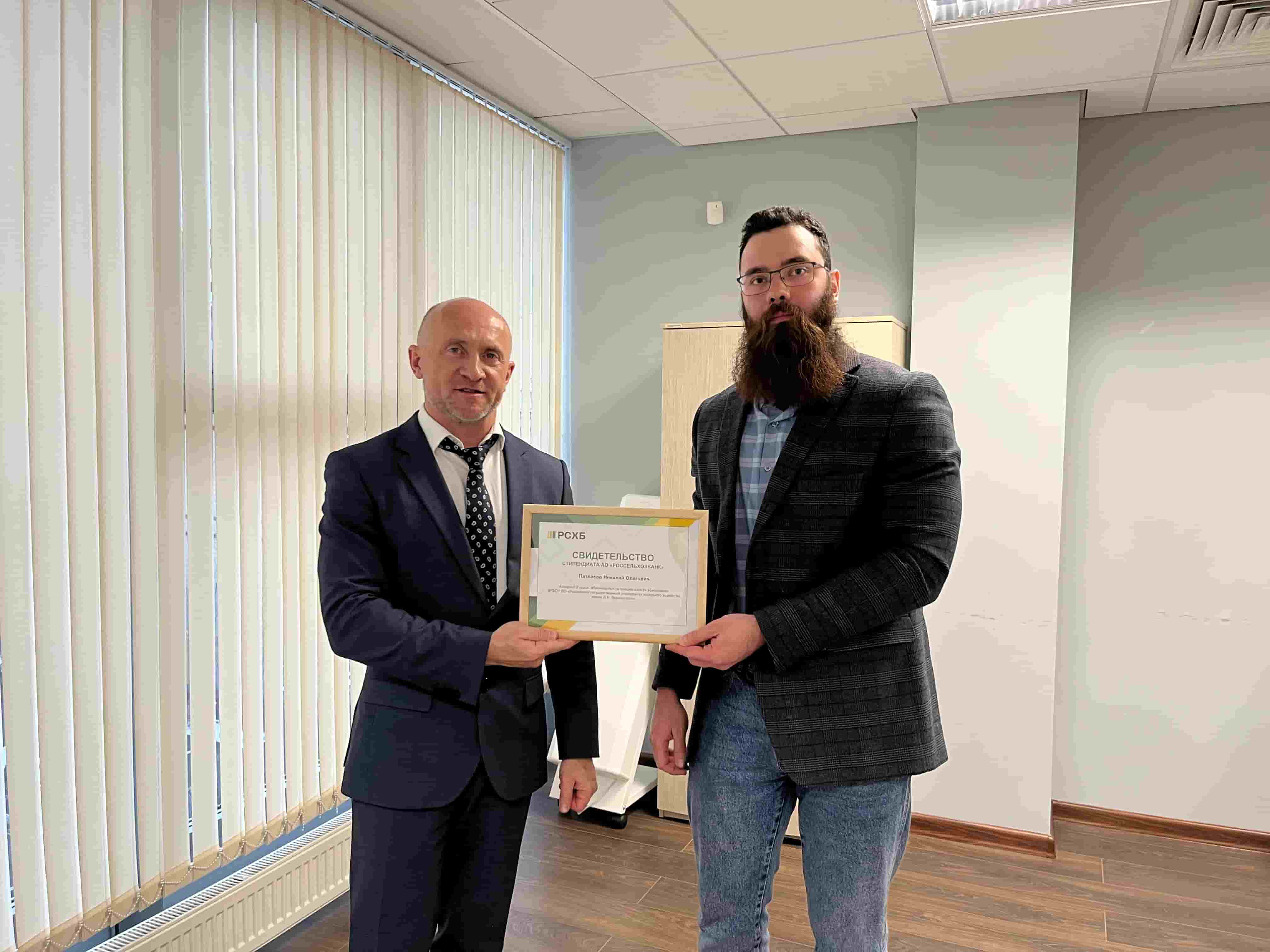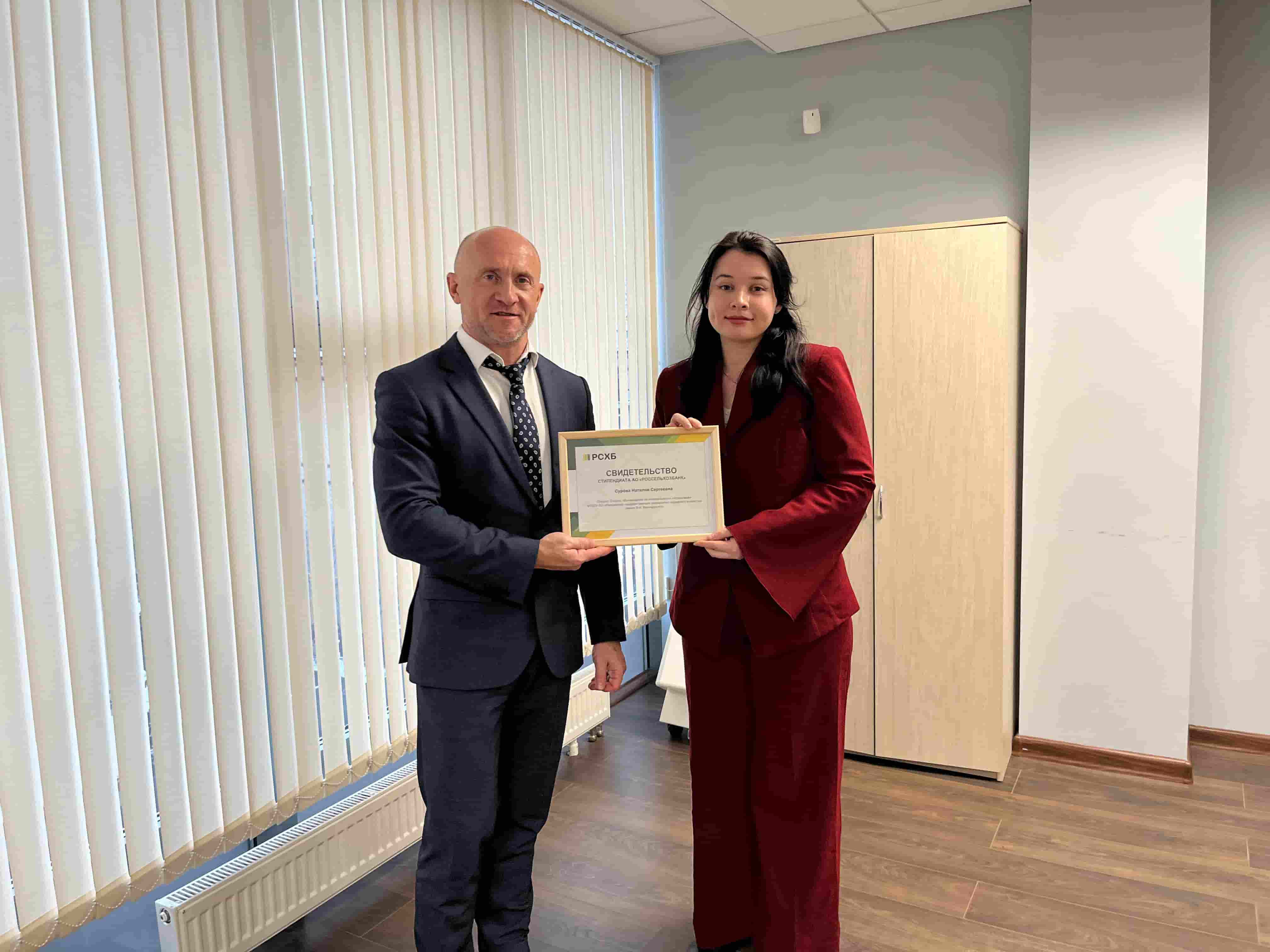 В региональном филиале АО «Россельхозбанк» прошла торжественная церемония вручения именных свидетельств стипендиатов лучшим студентам, магистрантам и аспирантам Университета Вернадского.