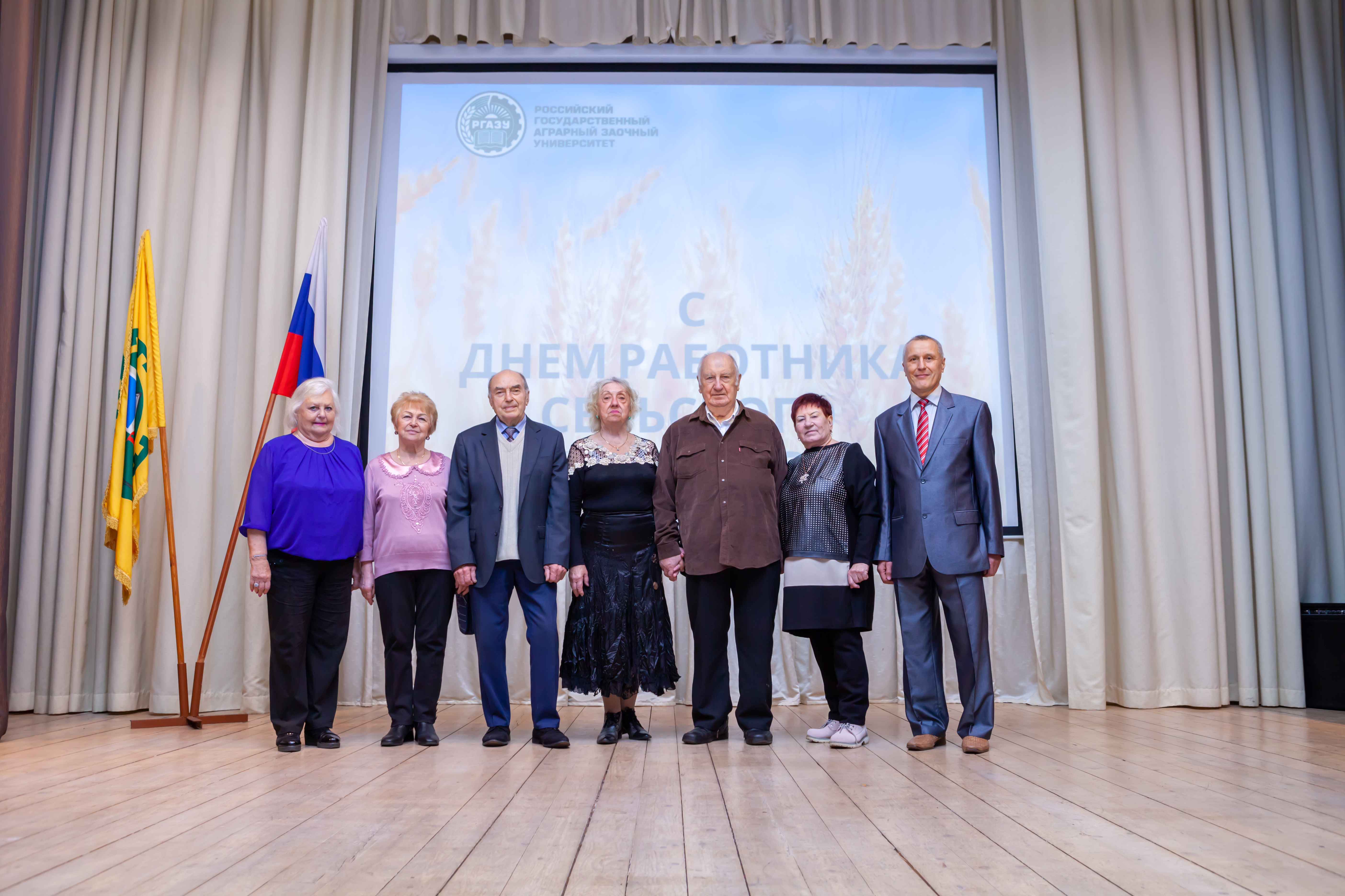Почетными гостями мероприятия стали ветераны университета: Спиридонова Александра Никитична-председатель совета ветеранов, профессор кафедры эксплуатации и технического сервиса Мороз Владимир Петрович, доцент кафедры экономики Галкина Валентина Андреевна, сотрудник университета Мамукова Элла Михайловна.