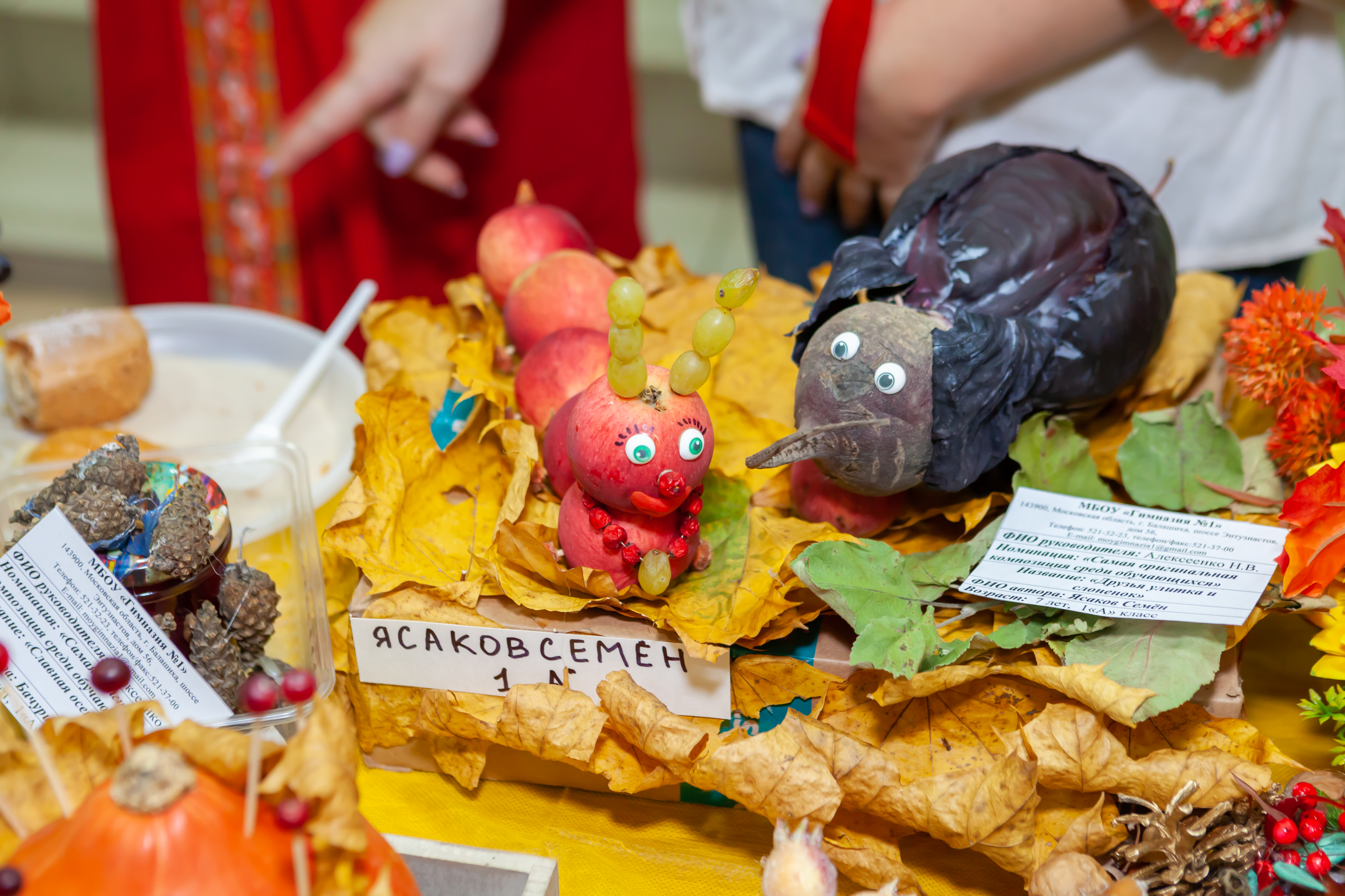 Победителями в выставке-конкурсе стали: Гимназия №1 "Самая оригинальная композиция среди общеобразовательных учреждений", Студенческий совет РГАЗУ "Самая оригинальная композиция среди обучающихся высшей школы", Классическая православная гимназия "Ковчег" номинация "Природная мастерская", коллектив факультета Электроэнергетики и технического сервиса "Соленья-варенья", кафедра управления "Лучшая цветочная композиция", Федосеева Наталья Анатольевна "Кулинарный шедевр" с работой "Фаршированный судак с креветками и вареными раками", Ефремов Алексей Николаевич "Чудо-утка". Все участники были награждены грамотами за активное участие.